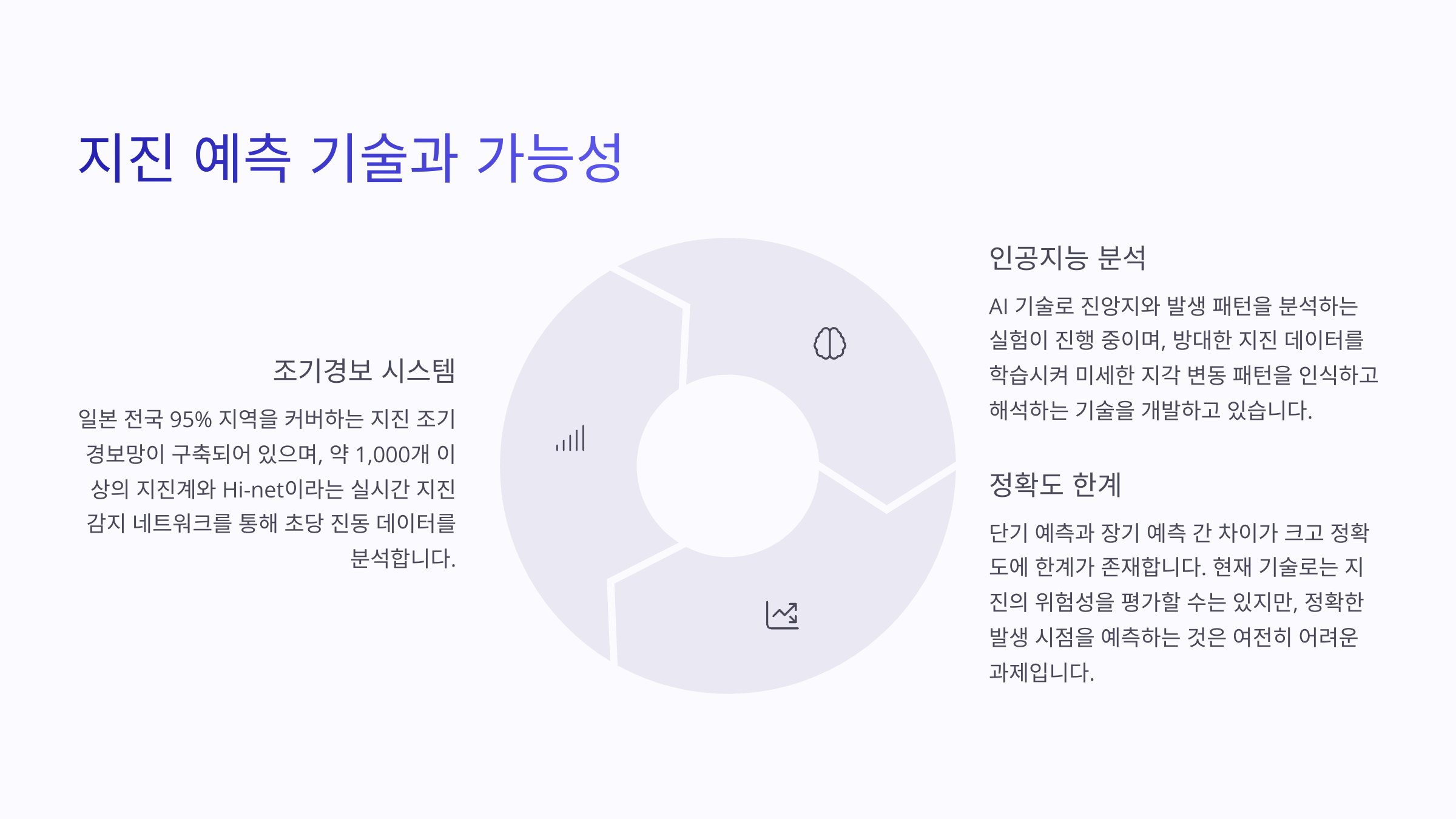 예측 기술에서 가장 주목받는 분야는 AI 기반 분석 모델이에요. 일본 국립지진연구소와 도쿄대, 민간 기업들이 협력해 과거 지진 데이터를 학습한 모델을 통해 '지진 발생 가능성 지수'를 계산하고 있어요. 아직까지는 1~3일 내 예측 정확도가 낮지만, 장기적으로는 유의미한 결과를 낼 수 있을 것으로 기대하고 있죠.