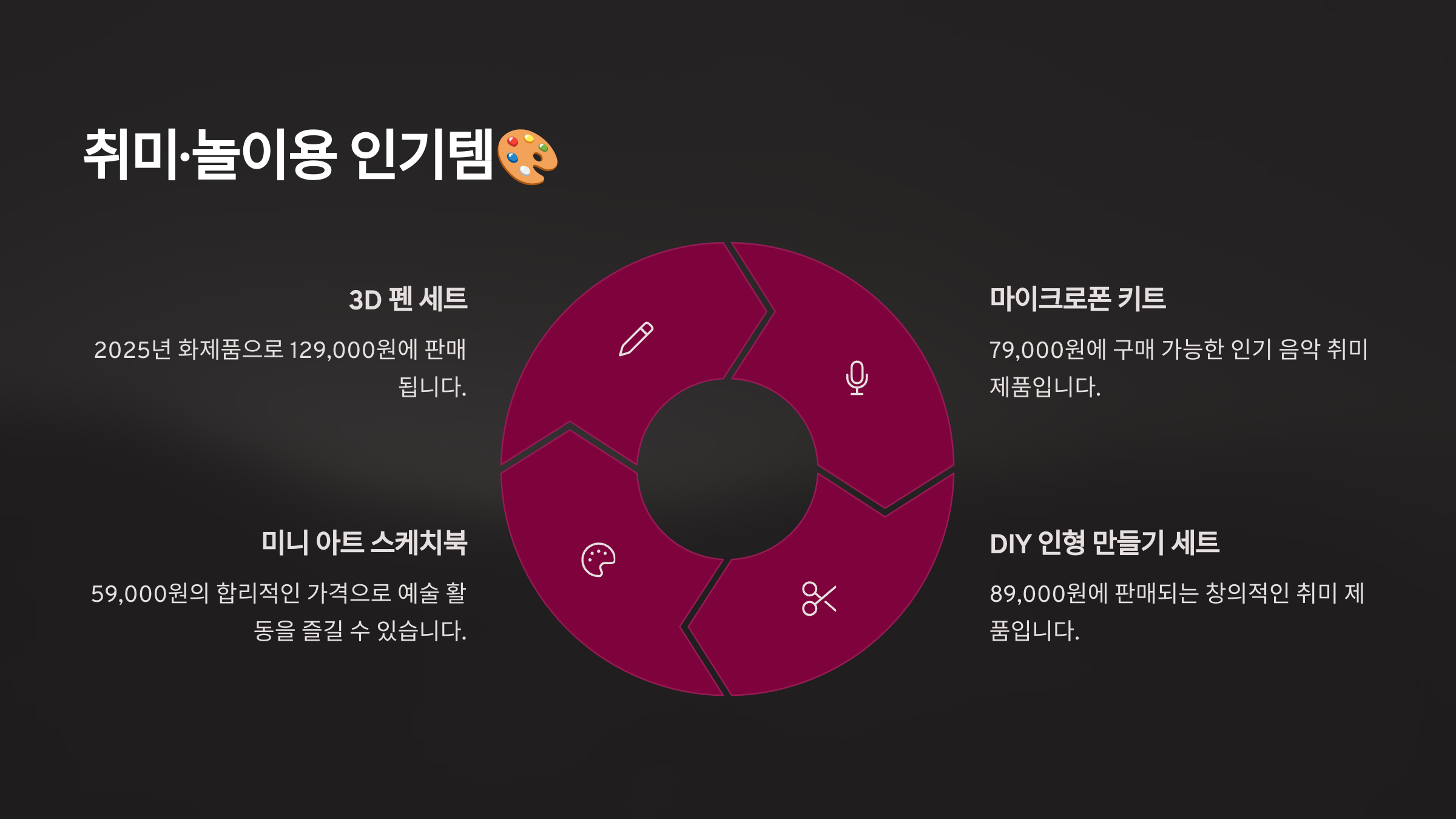 놀이와 취미 활동은 단순한 여가시간이 아닌, 아이의 내면을 풍부하게 만드는 중요한 성장 과정이에요. 재미와 의미를 동시에 담은 선물로 어린이날을 더욱 특별하게 만들어보세요. 💕