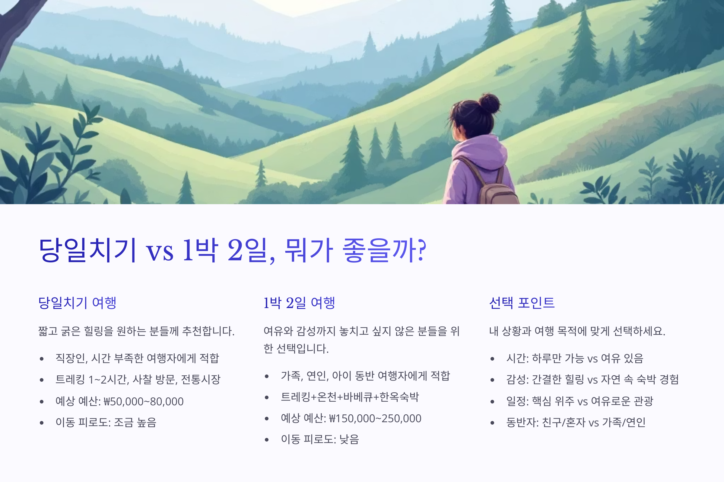 🚗 당일치기 vs 1박 2일, 뭐가 좋을까?