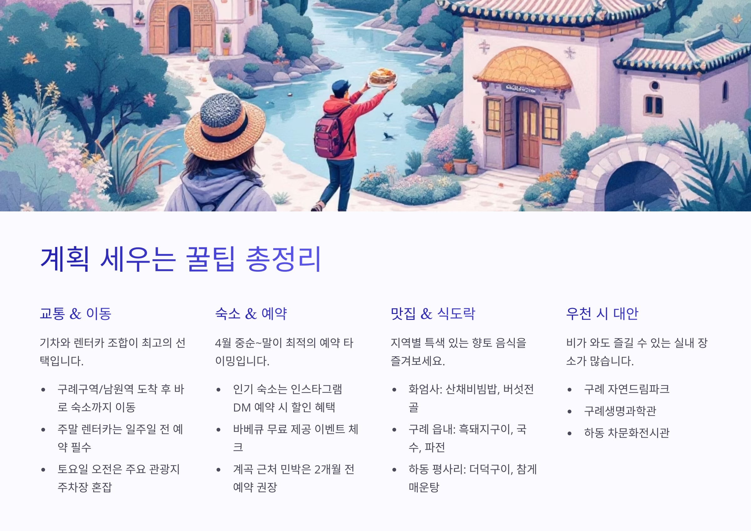 → 구례구역이나 남원역에 도착한 뒤, 숙소 근처까지 바로 이동 가능해요. - 숙소 팁
